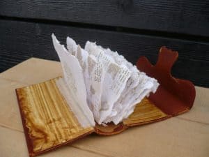 Door een oude boekbindtechniek toe te passen is een boekobject ontstaan, gevat in de omslag van een oud psalmenboekje.